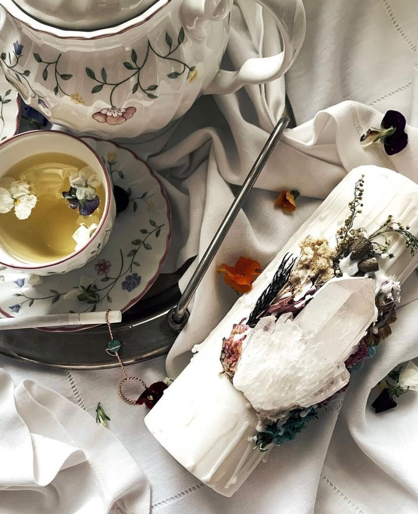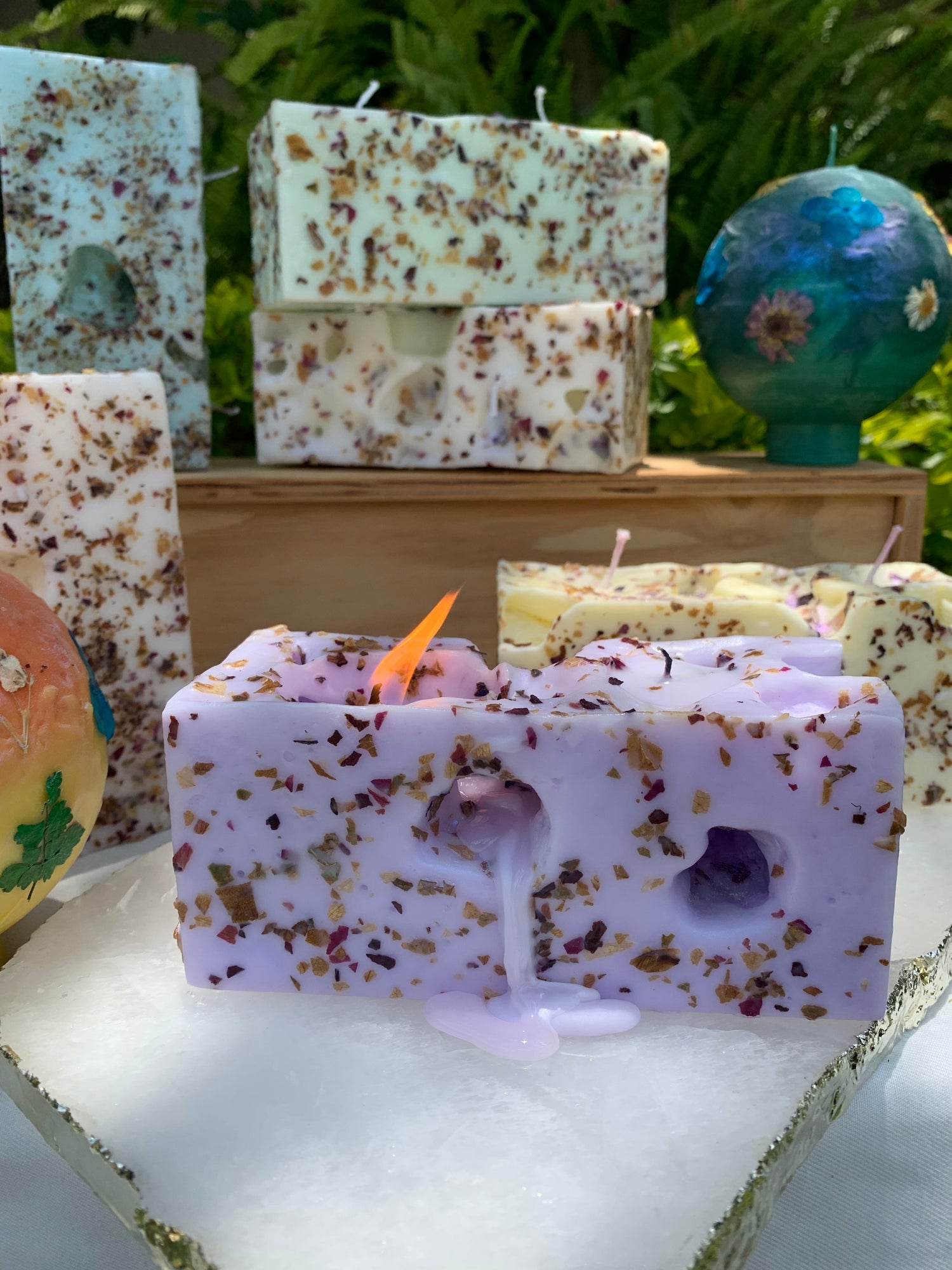 Our botanical taper candles are lightly scented with their own crystal themed...