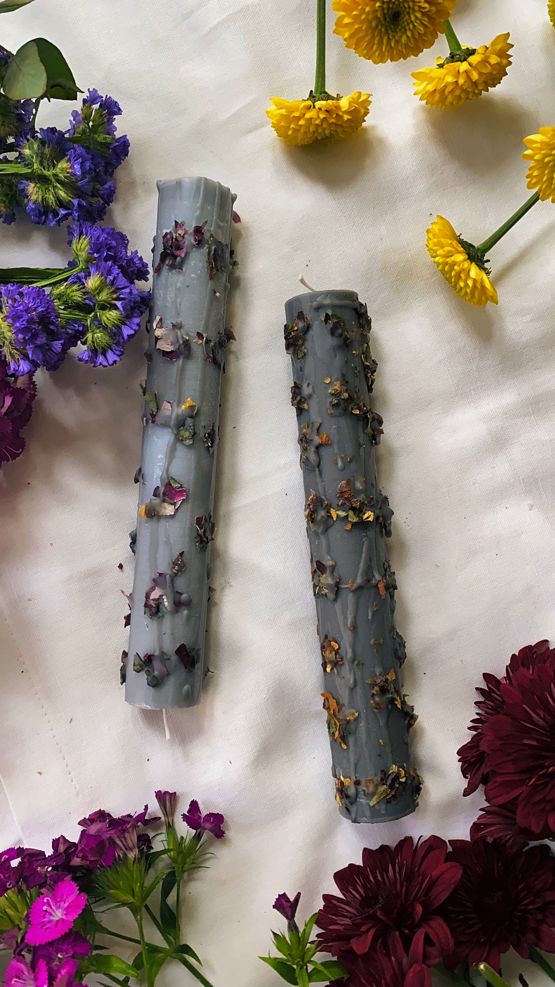 This dark grey taper candle changes colour to a white colour when warm and goes back to grey when cooled down.