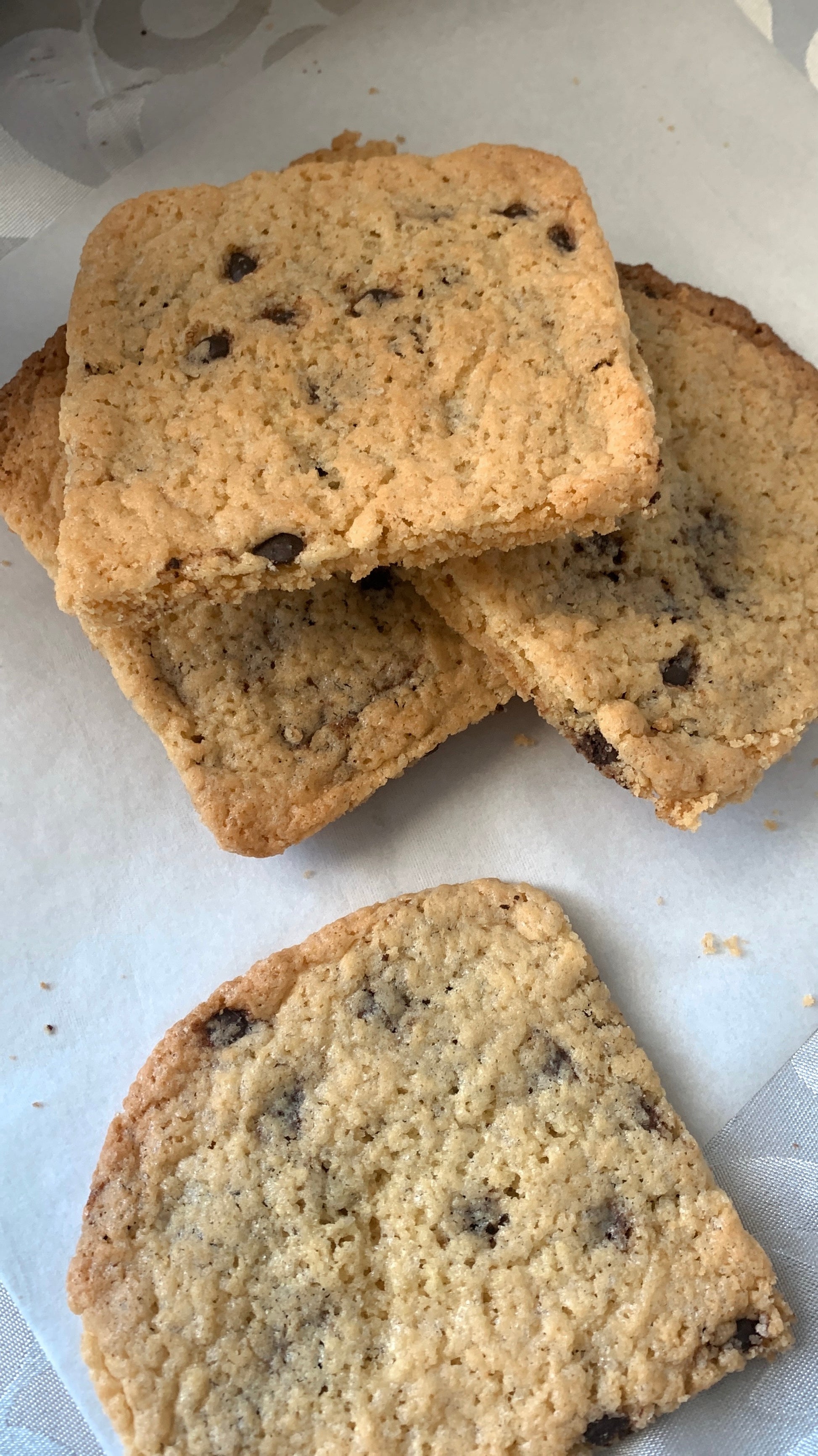 Salted Butter, Chocolate Chips, All Purpose Flour, Brown Sugar, White Sugar, Baking Soda, Baking Powder, Eggs, Vanila.
