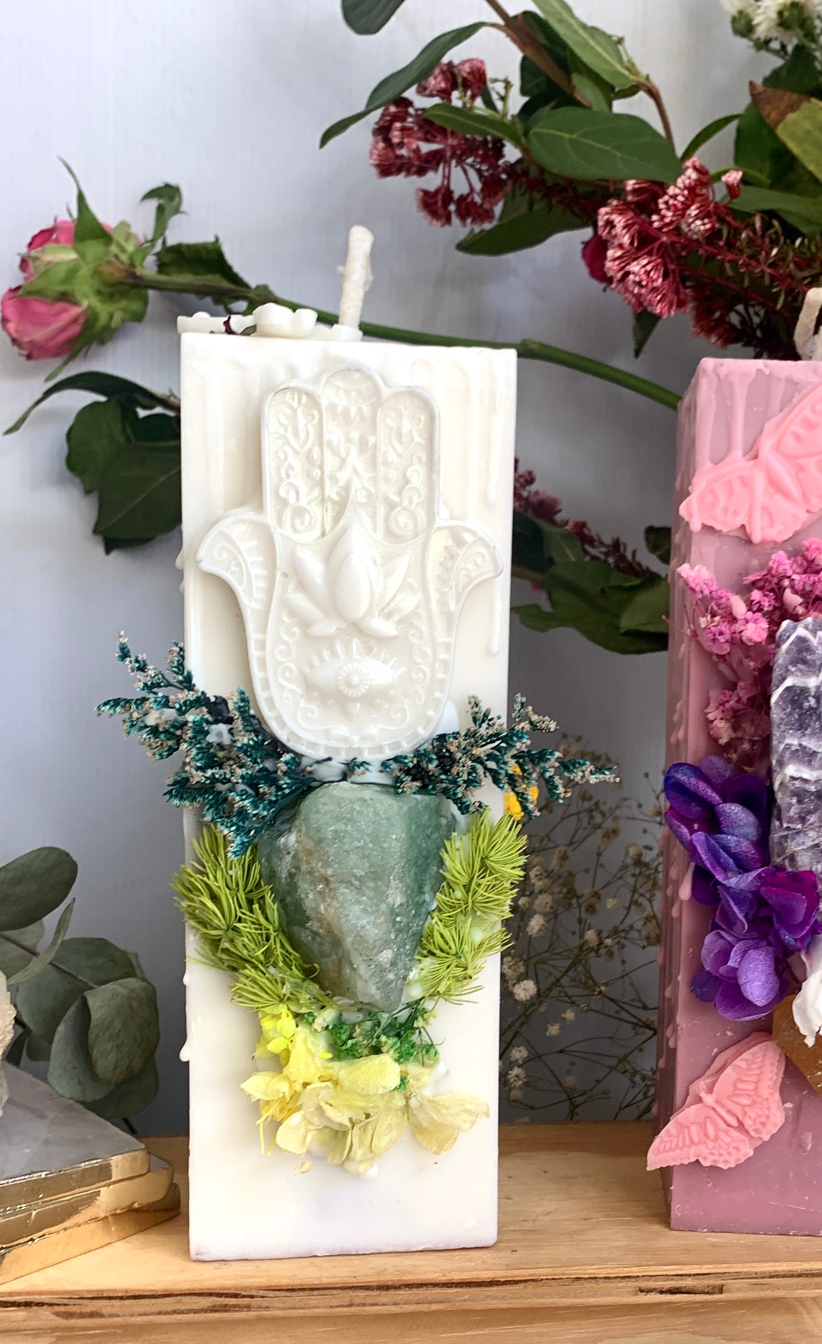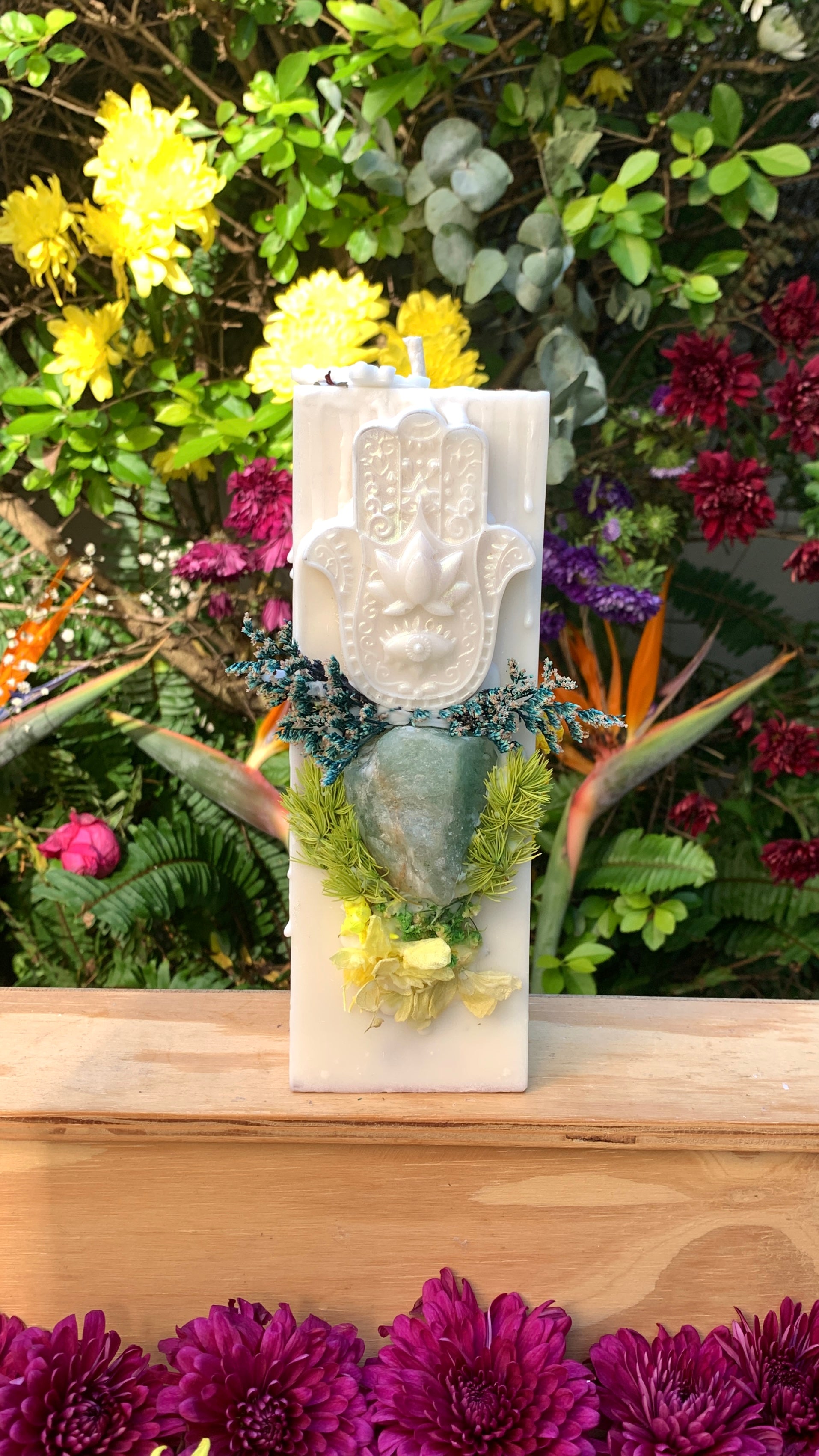 Hamsa green aventurine holds intentions of luck, positivity and creating energies of opportunities. This gem can enhance your luck, prosperity and creativity which makes it a great candle for overall manifestation. Use this candle when the moon is in Taurus or Libra or when working with your heart chakra, this beauty will bring you luck and abundance in all forms.